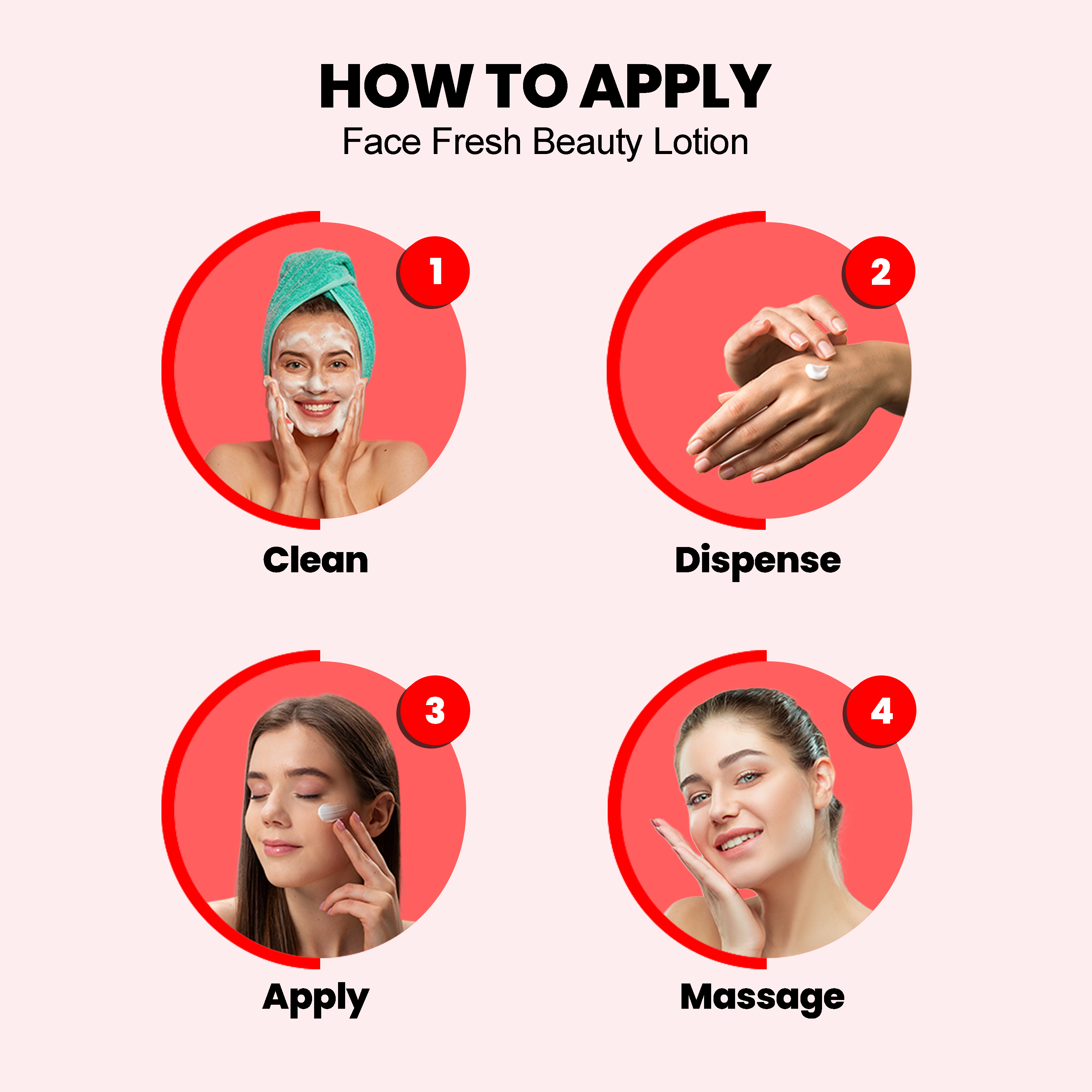How to use it: Begin by cleansing your face with a Face Fresh Body Face Wash or Face Fresh Cleansing Cream. This will remove any dirt or oils that may be present on your skin. Once your face is clean, take a small amount of body lotion and apply it to your face and neck. You can do this using your fingertips or a cotton pad. Massage the lotion into your skin in circular motions, working from your forehead down to your neck. Allow the lotion to absorb into your skin for a few minutes before applying any other products or makeup.