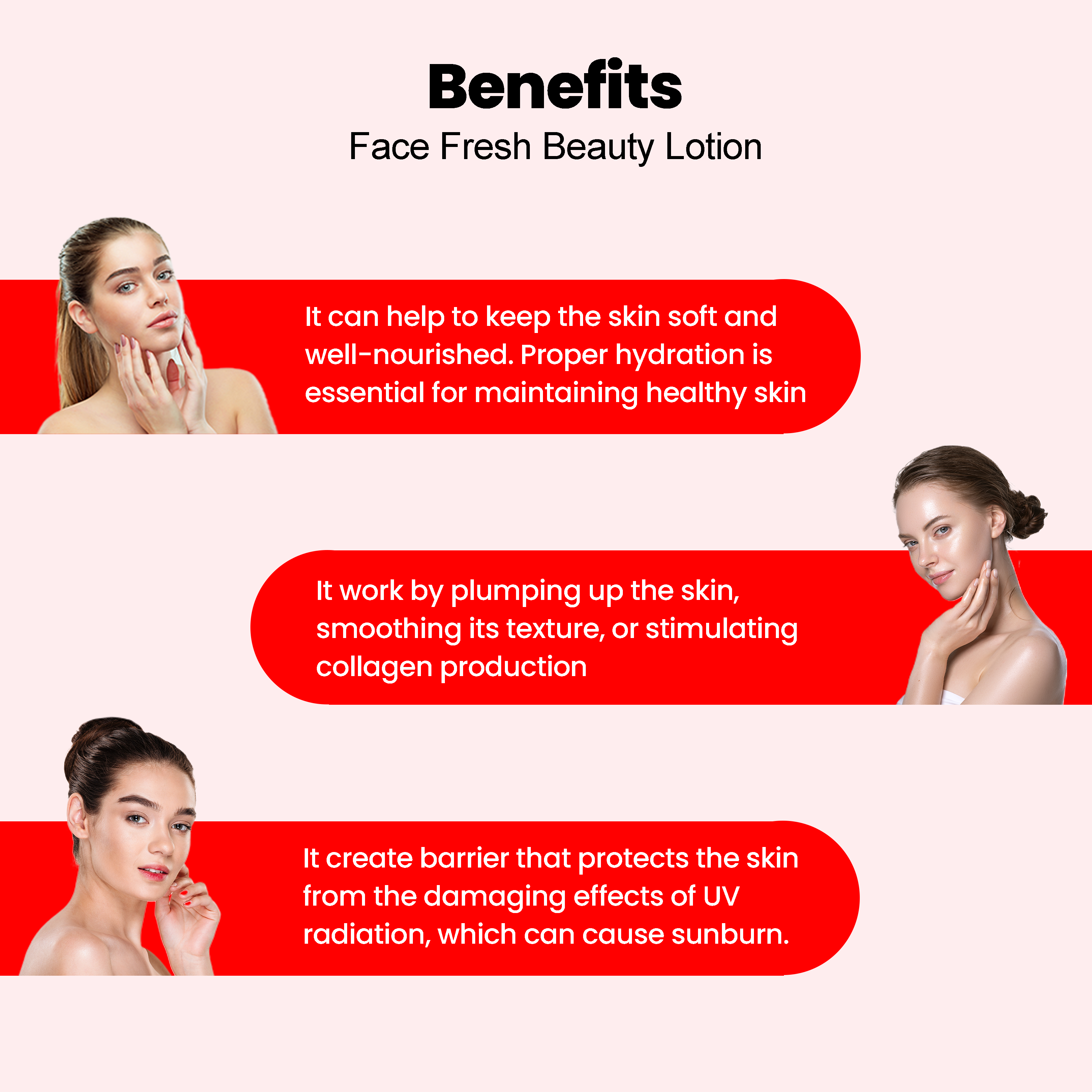 Face Fresh Beauty Lotion is designed to help lighten the skin and even out skin tone. It moisturizes the skin and prevents it from being dry. It works for all kinds of skin e.g. normal, sensitive, Dry, oily or combination Skin. The main ingredients in beauty lotion are humectants, which help to draw moisture into the skin, as well as emollients, which help to keep the moisture in.Â
