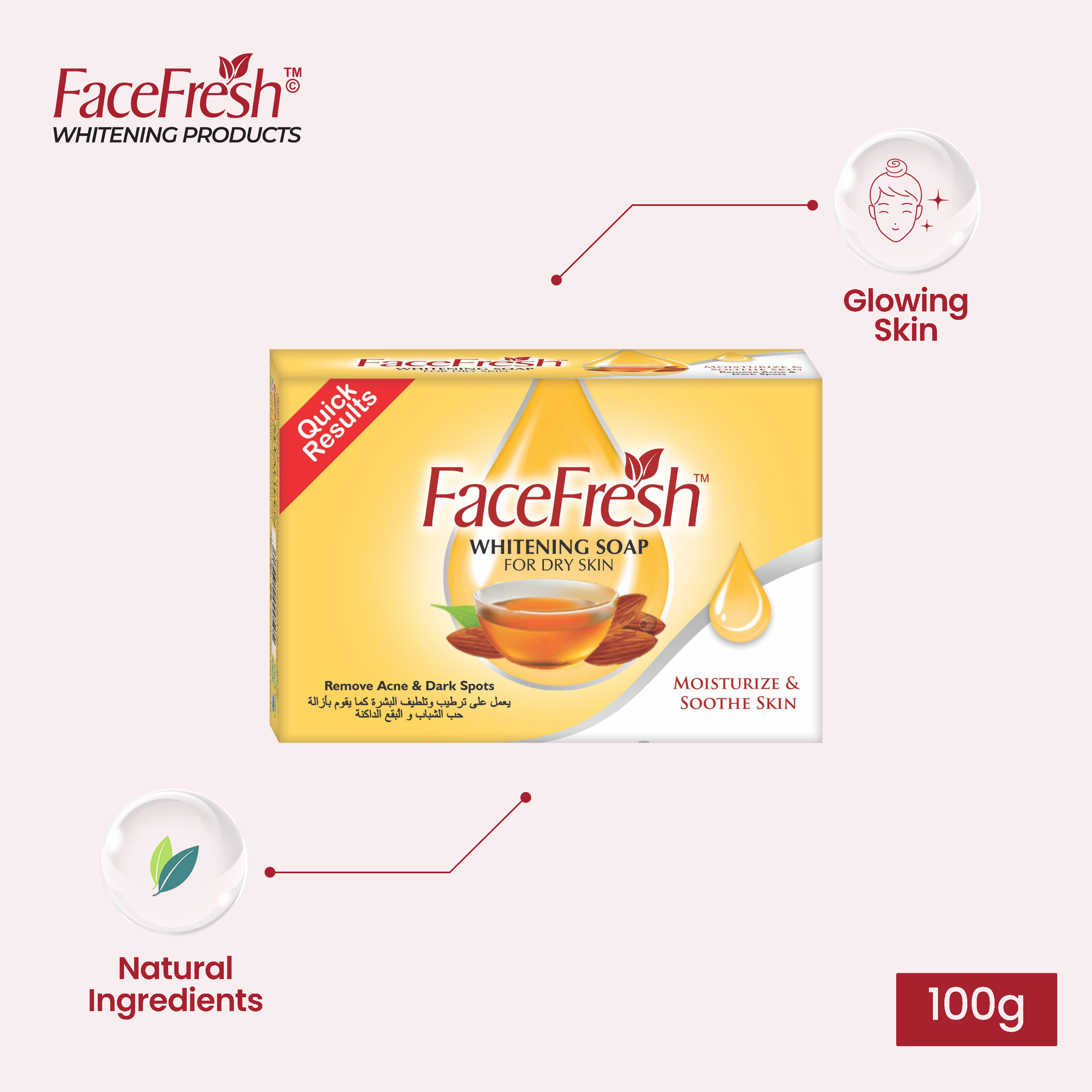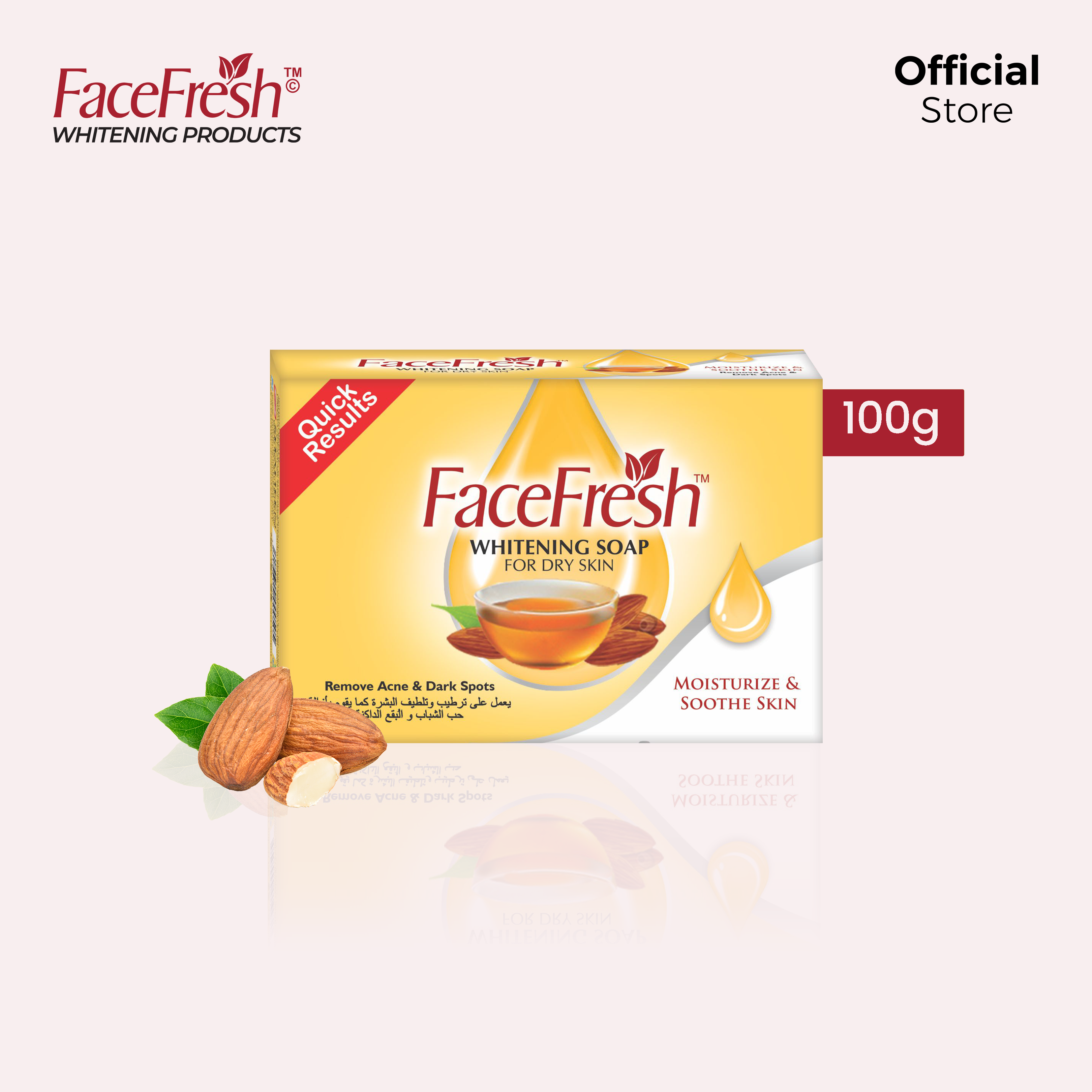 Face Fresh Whitening Soap is specifically formulated for dry skin which helps to moisturize the skin. It prevents wrinkles and dryness of the skin and makes your skin look smooth and fresh.