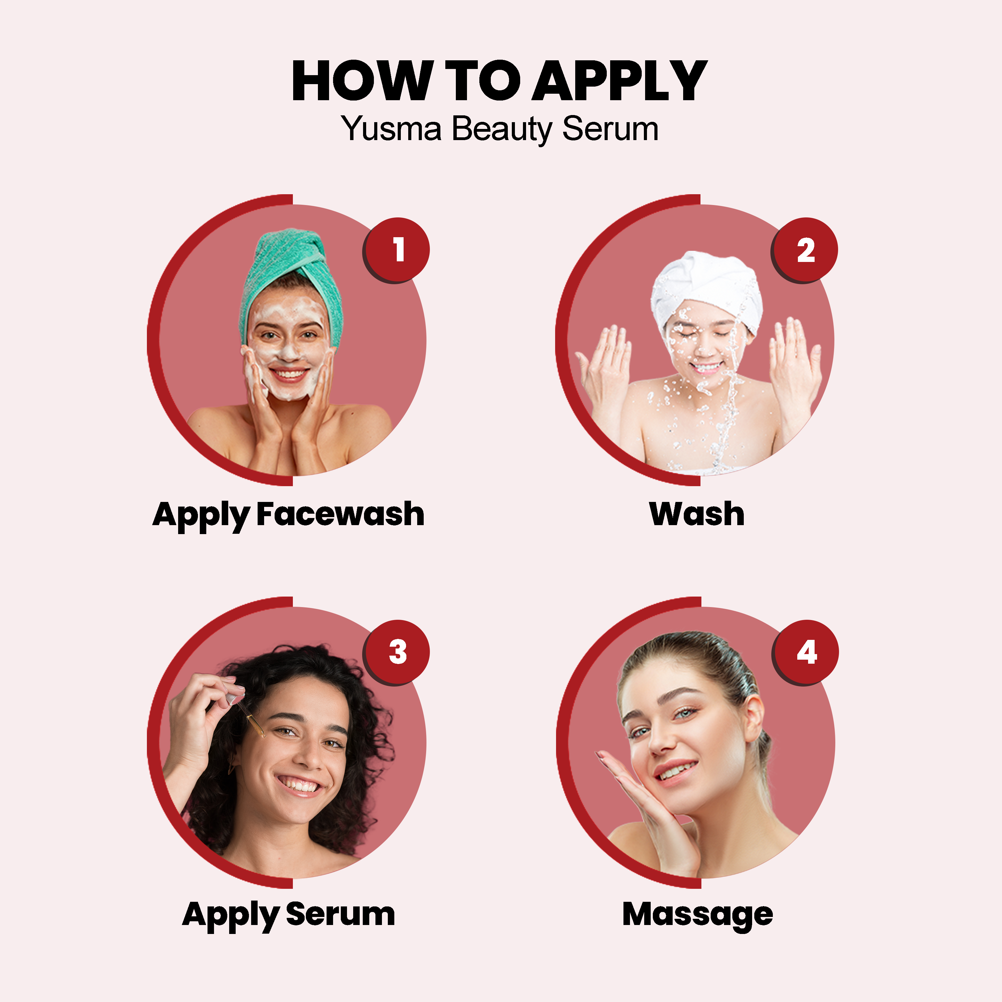 How to use it: Begin by cleansing your face with a Yusma Beauty Face Wash. This will remove any dirt or oils that may be present on your skin. Once your face is clean, take a small amount of Yusma Beauty Serum and apply it to your face and neck. You can do this using your fingertips or a cotton pad. Allow it to absorb into your skin for a few minutes before applying any other products or makeup.