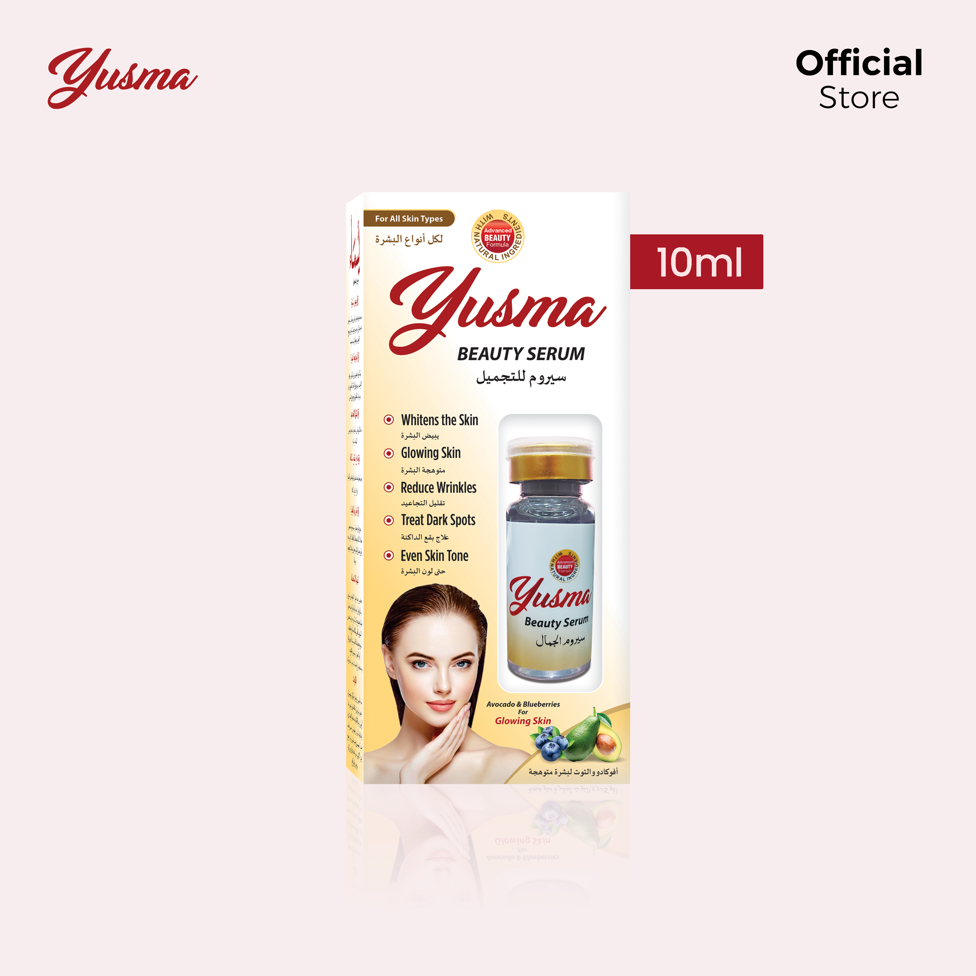 Glutathione is also an ingredient of Yusma Beauty Serum which acts as a sunblock and saves you from sun tanning and ultraviolet rays to make you look fresh and beautiful for a long time.